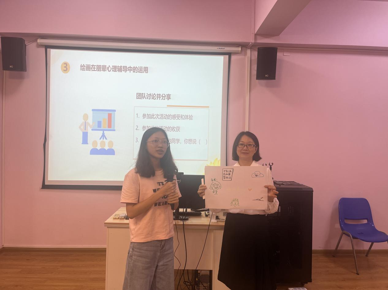 11月15日,我校邀请广西机电职业技术学院董蓓副教授为同学们开展了主题为《绘画疗法在朋辈辅导中的运用》的精彩讲座。董蓓从绘画疗法的定义入手,详细阐述了朋辈心理辅导的含义,深入探讨了绘画在朋辈辅导中的具体应用,并通过呈现《清明上河图》等名画及学生绘制作品,生动地展示了绘画疗法的魅力。同时,她还通过自画像、情绪画、团队绘画接龙等活动与学生们进行互动,让大家亲身体会绘画疗法,指导学生们如何在实践中具体运用。
