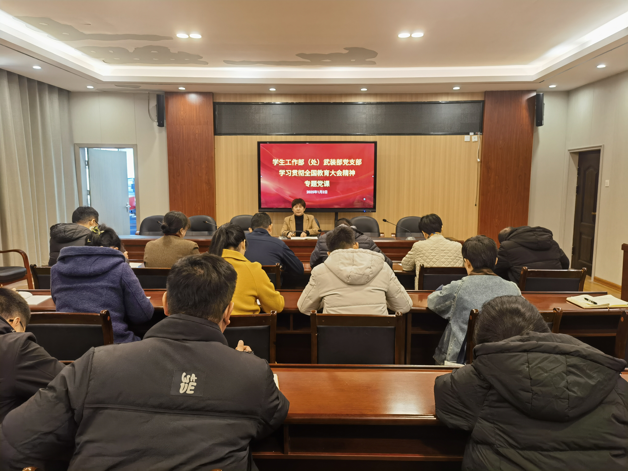 为深入学习贯彻全国教育大会精神,引导教师党员在以学铸魂、以学增智、以学正风、以学促干上下功夫见实效,1月2日,学生工作部(处)武装部党支部开展学习贯彻习近平总书记在全国教育大会上的重要讲话精神专题党课,支部全体党员参加会议。
