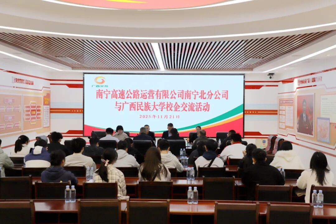 学生工作部(处)携手政治与公共管理学院带领师生代表一行赴广西交投集团南宁高速公路运营有限公司南宁北分公司进行校企交流活动。南宁高速公路运营有限公司南宁北分公司党总支书记王海及相关部门负责人参加交流活动。
