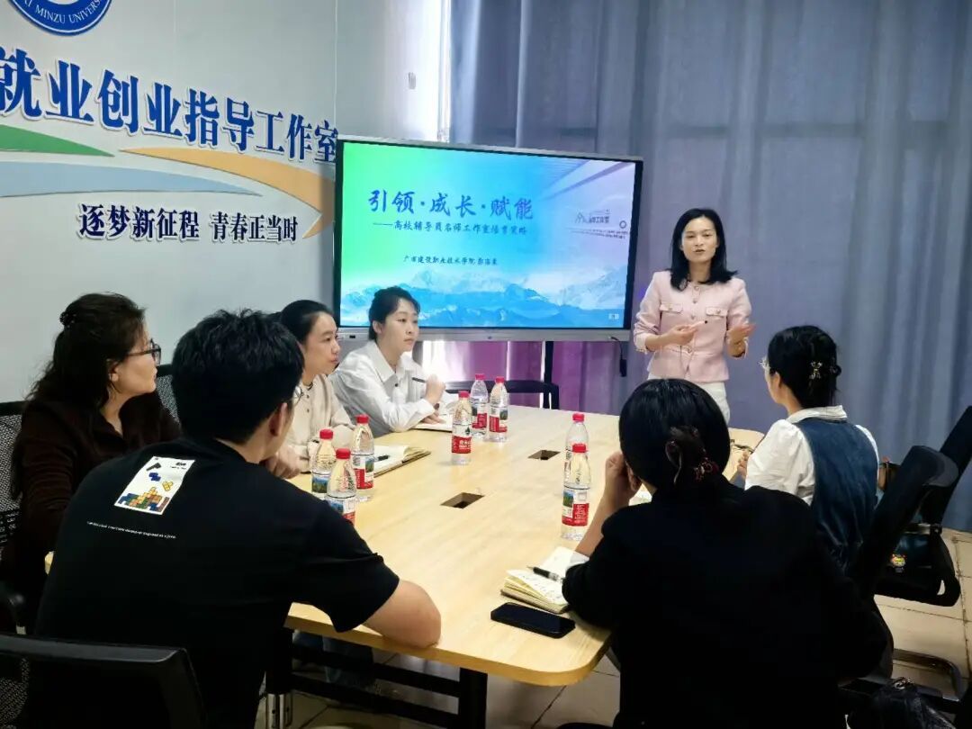 近日,由“职行”大学生就业创业指导工作室承办的第二十四期“和你同行”辅导员工作沙龙顺利举行。本次沙龙聚焦“高校辅导员工作室建设”主题,特邀教育部首批高校辅导员名师工作室、第一批广西高校高水平辅导员工作室主持人、广西建设职业技术学院郭海棠老师担任主讲。我校各校级、自治区级辅导员工作室成员代表参与活动。郭海棠老师以《引领·成长·赋能——高校辅导员名师工作室培育策略》为题作专题分享。
