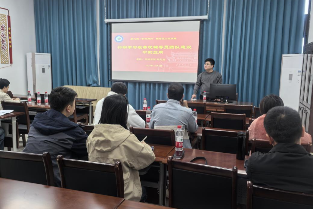 12月6日上午,我校在武鸣校区信息楼举办第六期“和你同行”辅导员主题分享会。此次分享会以“行动学习在高校辅导员团队建设中的应用”为主题,由管理学院专职辅导员杨志鑫作主题分享,武鸣校区全体辅导员参加,学生工作部(处)副部(处)长韩燕燕出席主题分享会,伟德国际1946科科长高崧耀主持。