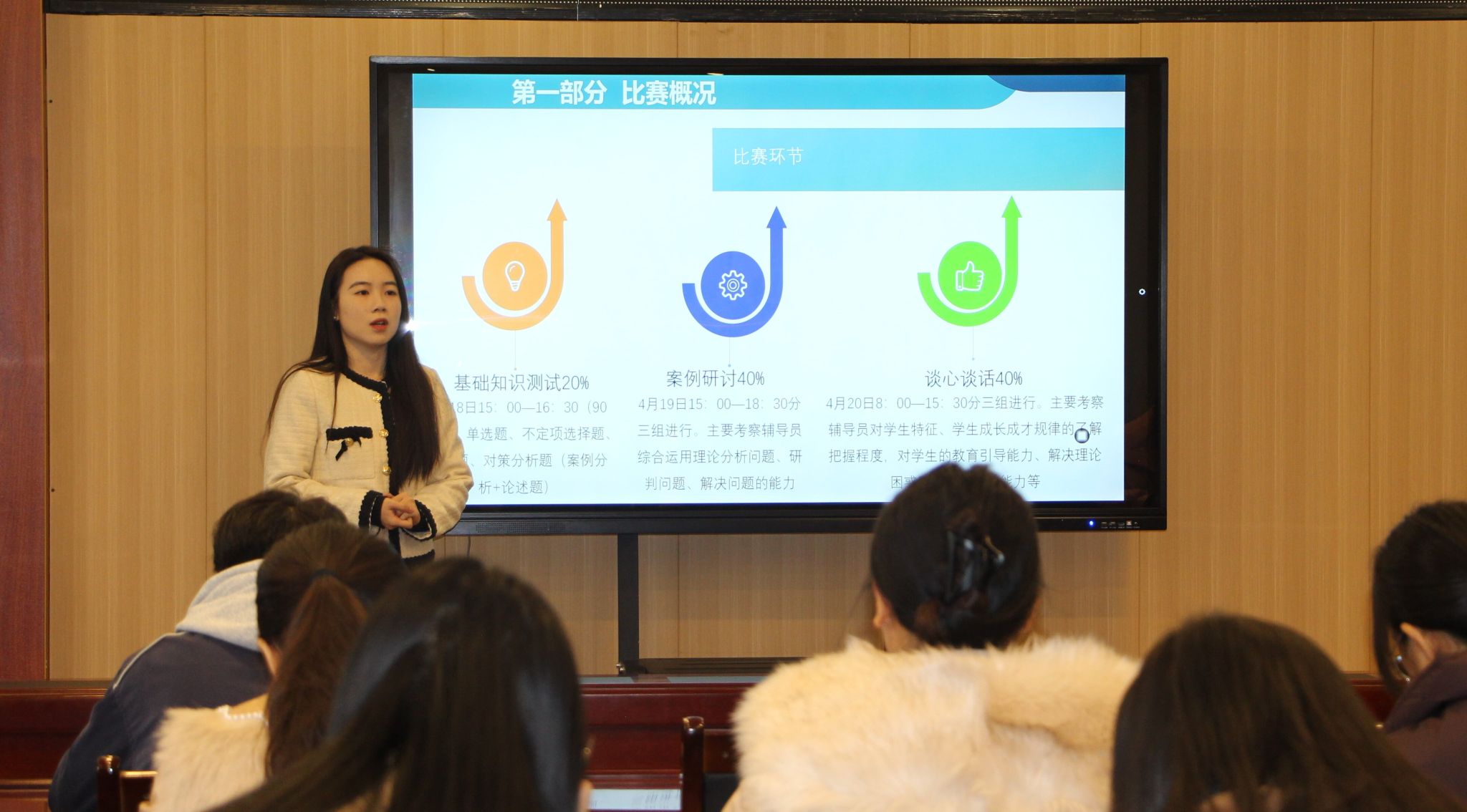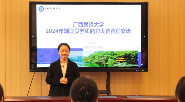 第十二届辅导员素质能力大赛区赛特等奖获得者农植媚着重讲解了区赛和国赛赛制、案例研讨环节备赛经验等。她结合大赛相关文件政策、个人参赛经验、日常工作实务,详细分享了比赛注意事项和参赛技巧。