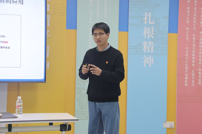 化学化工学院辅导员李申桢和苏元夫共同分享“高校生涯团体辅导培训心得体会”。李申桢介绍了团体辅导的特点、不同高校的教学模式、培训流程。苏元夫介绍了团体辅导的应用、团体破冰游戏,以及培训会的心得体会。
