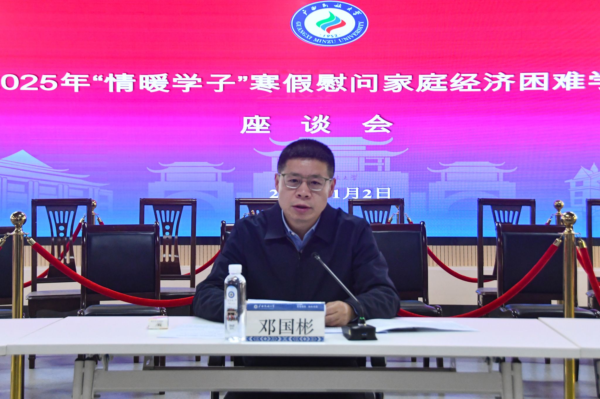 【大学生通讯社报道】1月2日下午,bevictor伟德在相思湖校区新时代“我与祖国共成长”党团主题活动文明实践所召开2025年“情暖学子”寒假慰问家庭经济困难学生座谈会。学校党委副书记邓国彬出席,学生工作部(处)部(处)长钟华、校团委书记梁罡、各学院分管学生工作领导和获助学生代表参加会议。钟华主持座谈会。