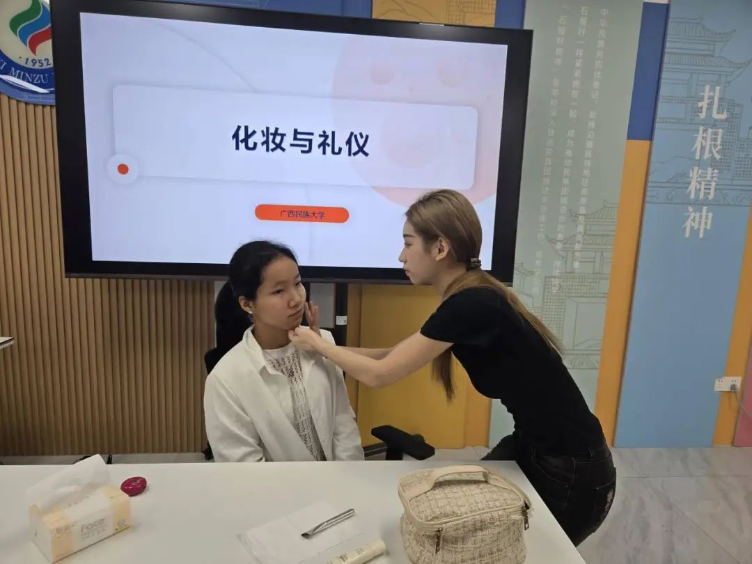4月26日下午,红石榴课堂系列之化妆与礼仪培训活动在学校思源湖校区“一站式”学生社区顺利开展。此次活动由学生工作部(处)资助中心主办,学校礼仪队的蒙鸿临和黄雯馨同学担任讲师,吸引了来自各学院的学生代表踊跃参与。