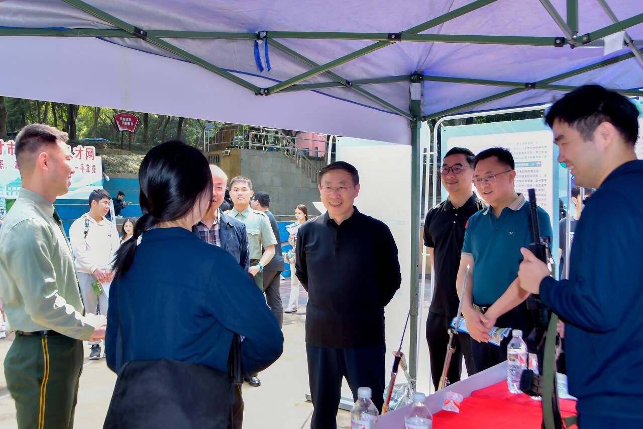 上午10点,校党委书记卞成林走访招聘展位时,特意驻足征兵咨询台,对征兵宣传工作的创新做法给予肯定。卞成林鼓励同学们积极响应祖国召唤,踊跃参军报国,将个人理想融入强军实践中。
