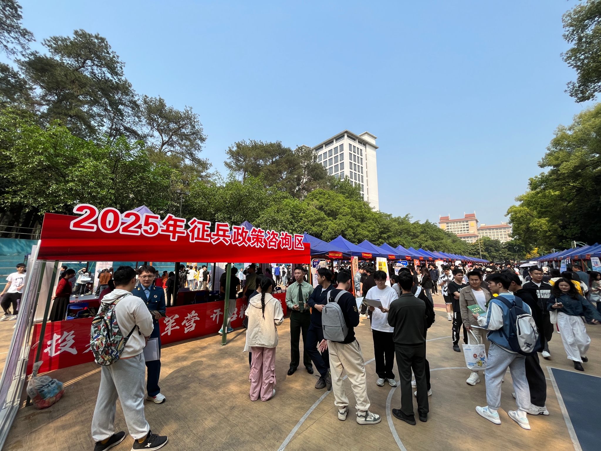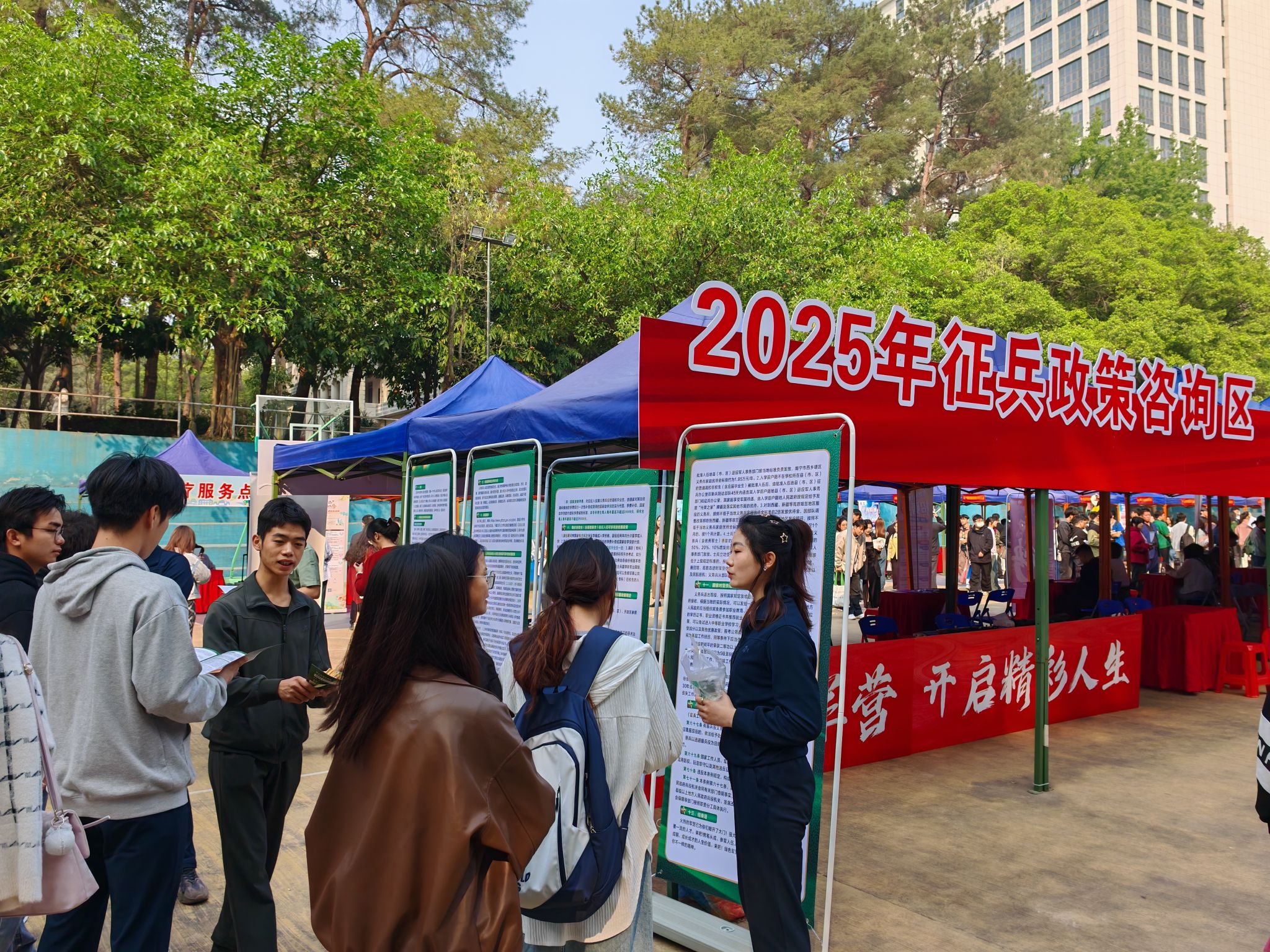 3月22日上午,广西2025届重点群体高校暨“宏志助航计划”精准帮扶就业双选会在bevictor伟德相思湖校区灯光球场举行。为积极响应国家号召,激发应届毕业生参军报国热情,学校武装部在现场开展征兵宣传活动,打造征兵政策咨询区。