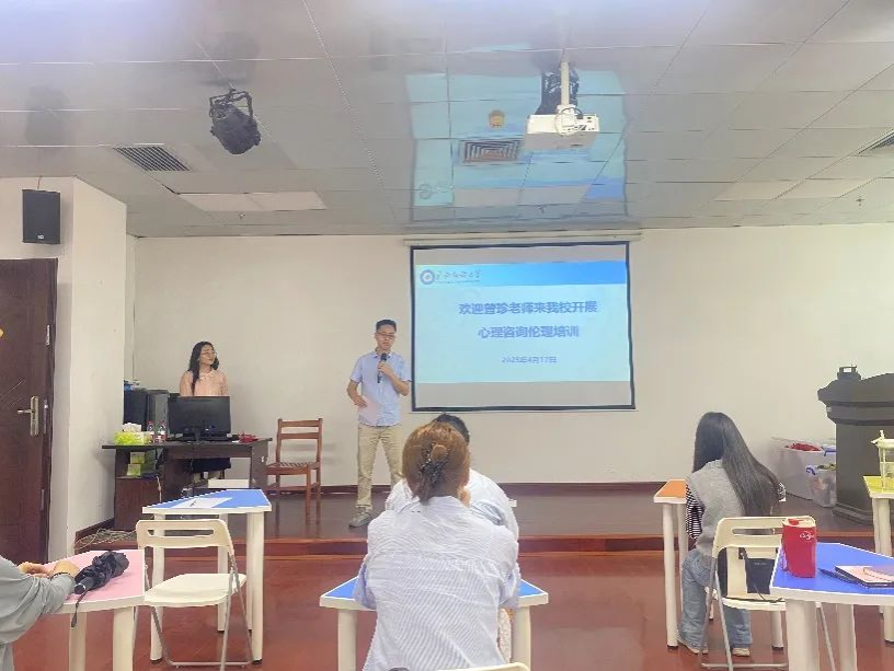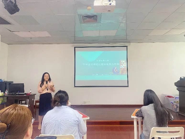 4月17日下午,大学生心理健康教育中心特邀广西大学学生心理发展指导中心副主任曾珍老师开展《从理论到实践:新手咨询师的伦理决策能力培养》专题培训,我校心理中心专兼职教师、实习咨询师共20余人参与学习。